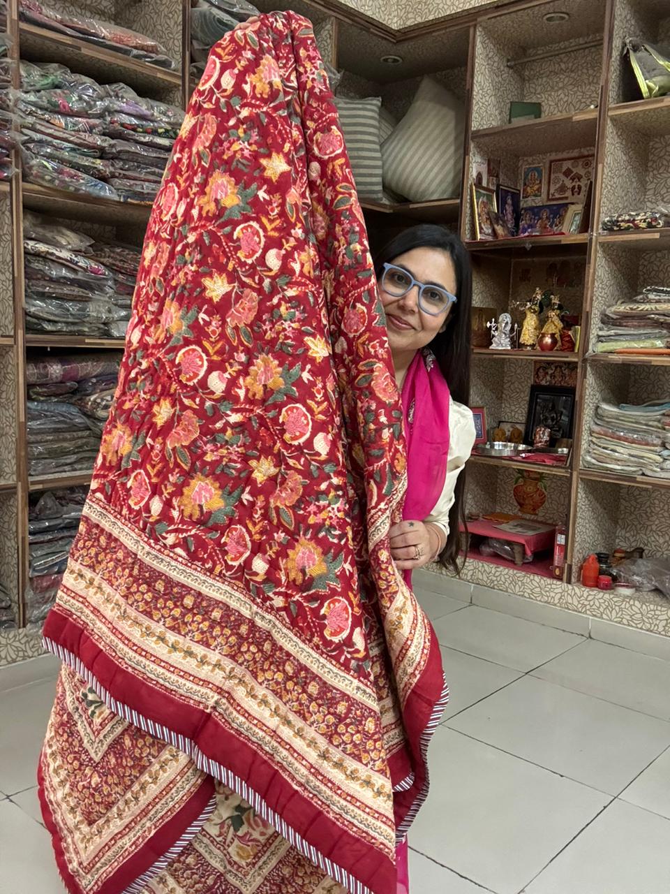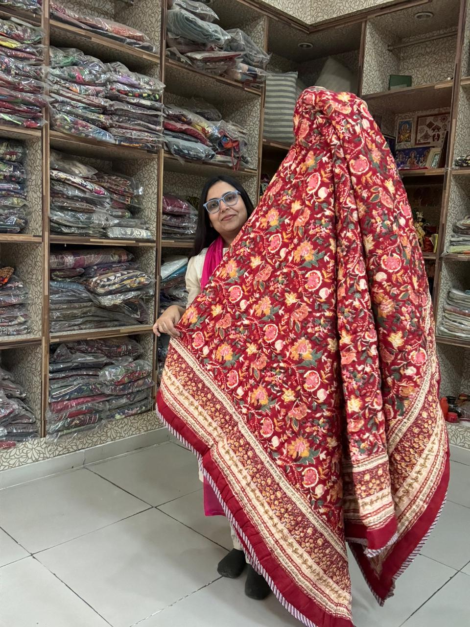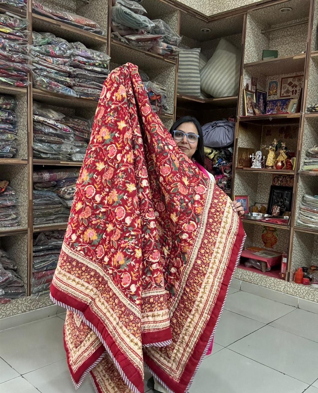 Double Bed -All Season Mulmul Jaipuri Quilt - Hand Block Print Maroon Affair (Dispatch Time 24 Hours)