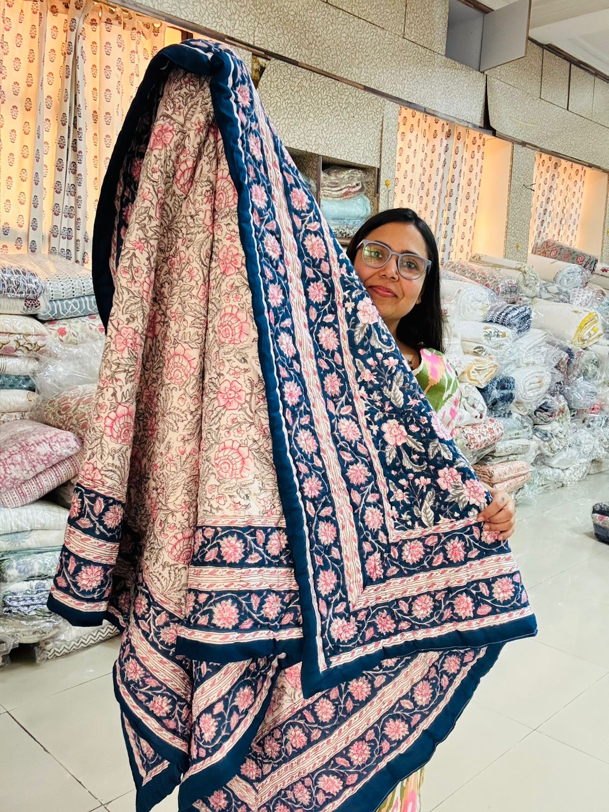 Hand Stitched Block Print Jaipuri Razai, Each piece is done for your comfort, soft color palette. Soft, muted colors like pastels and neutrals create a calming atmosphere.