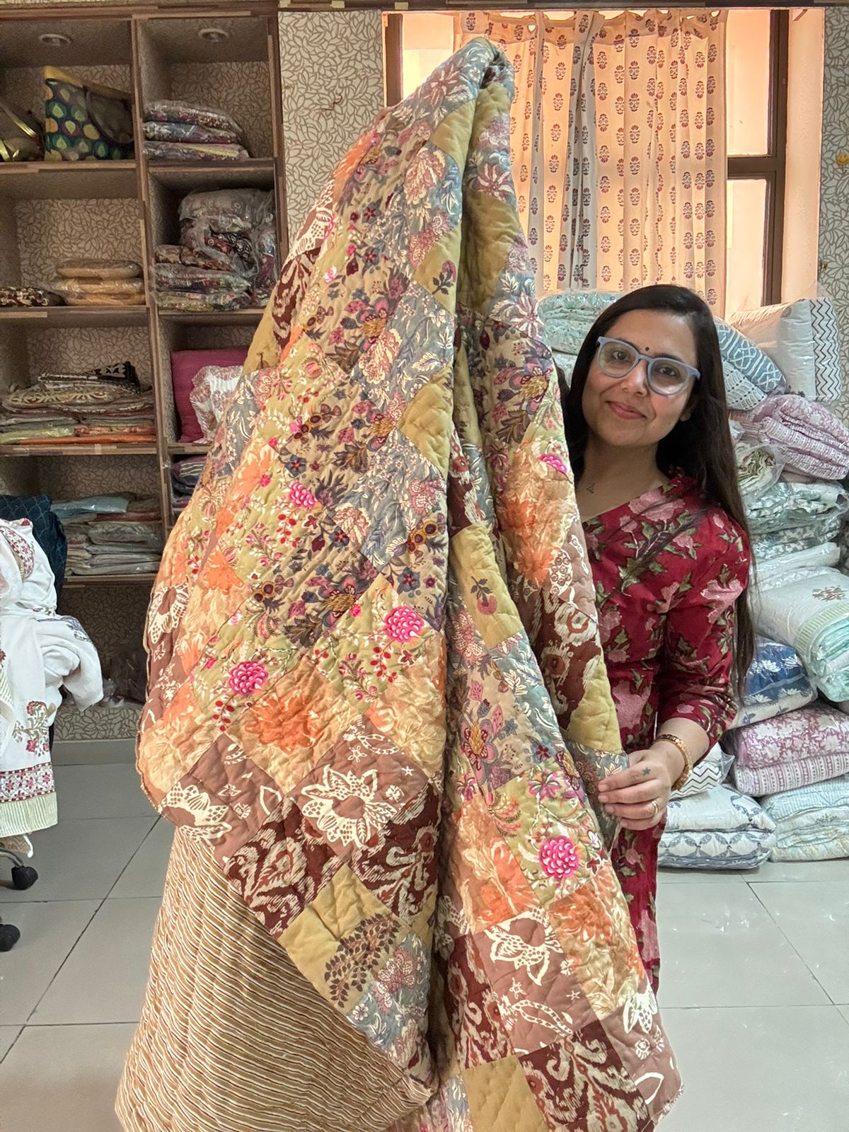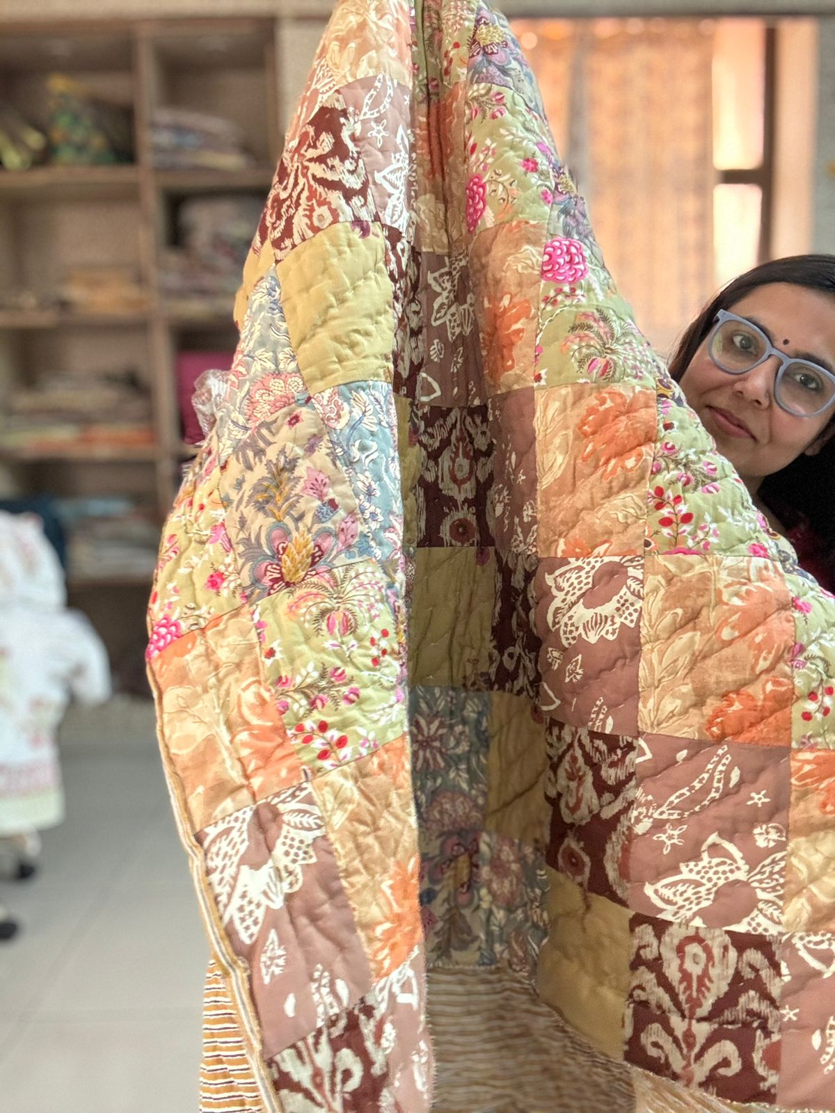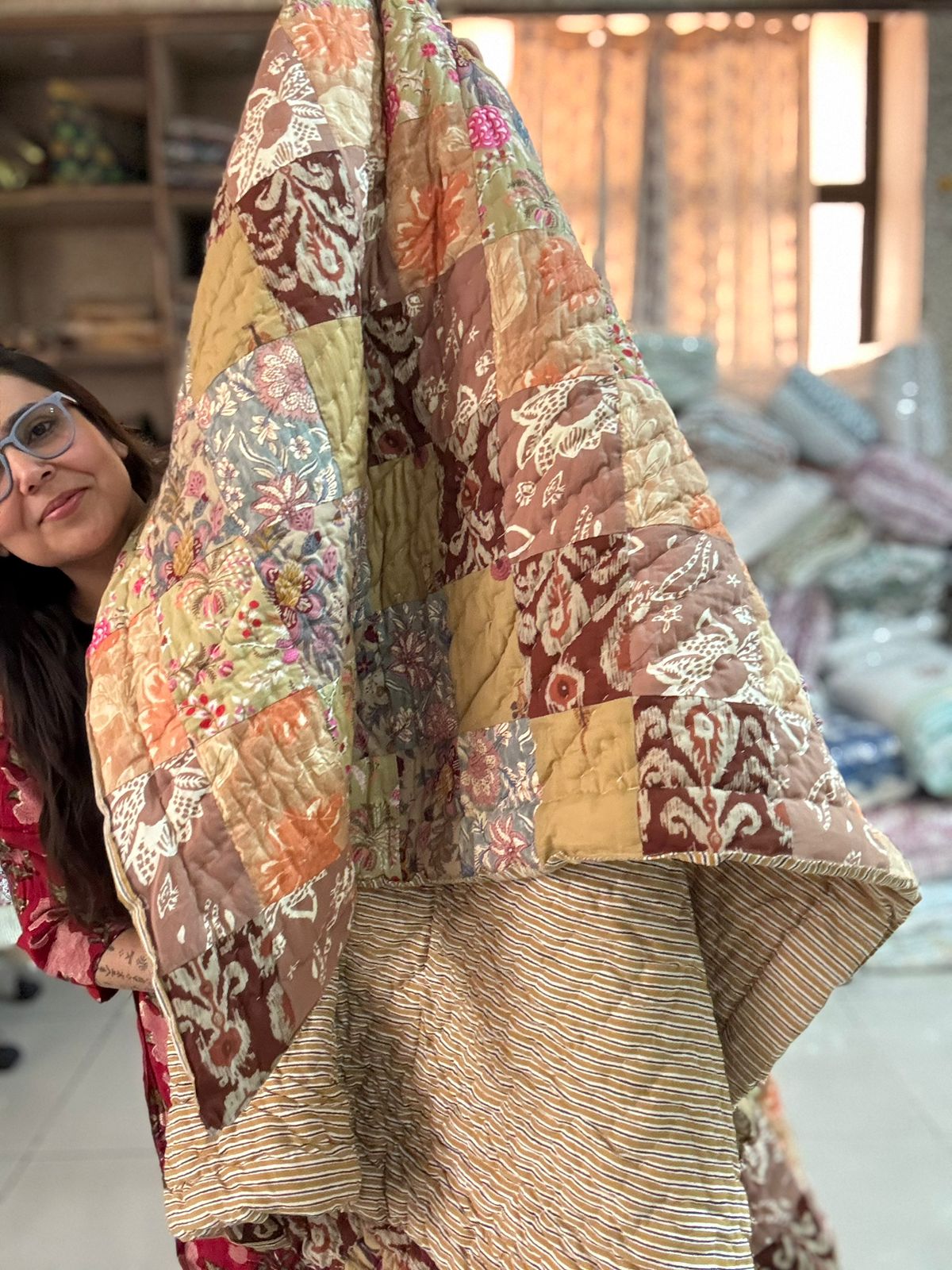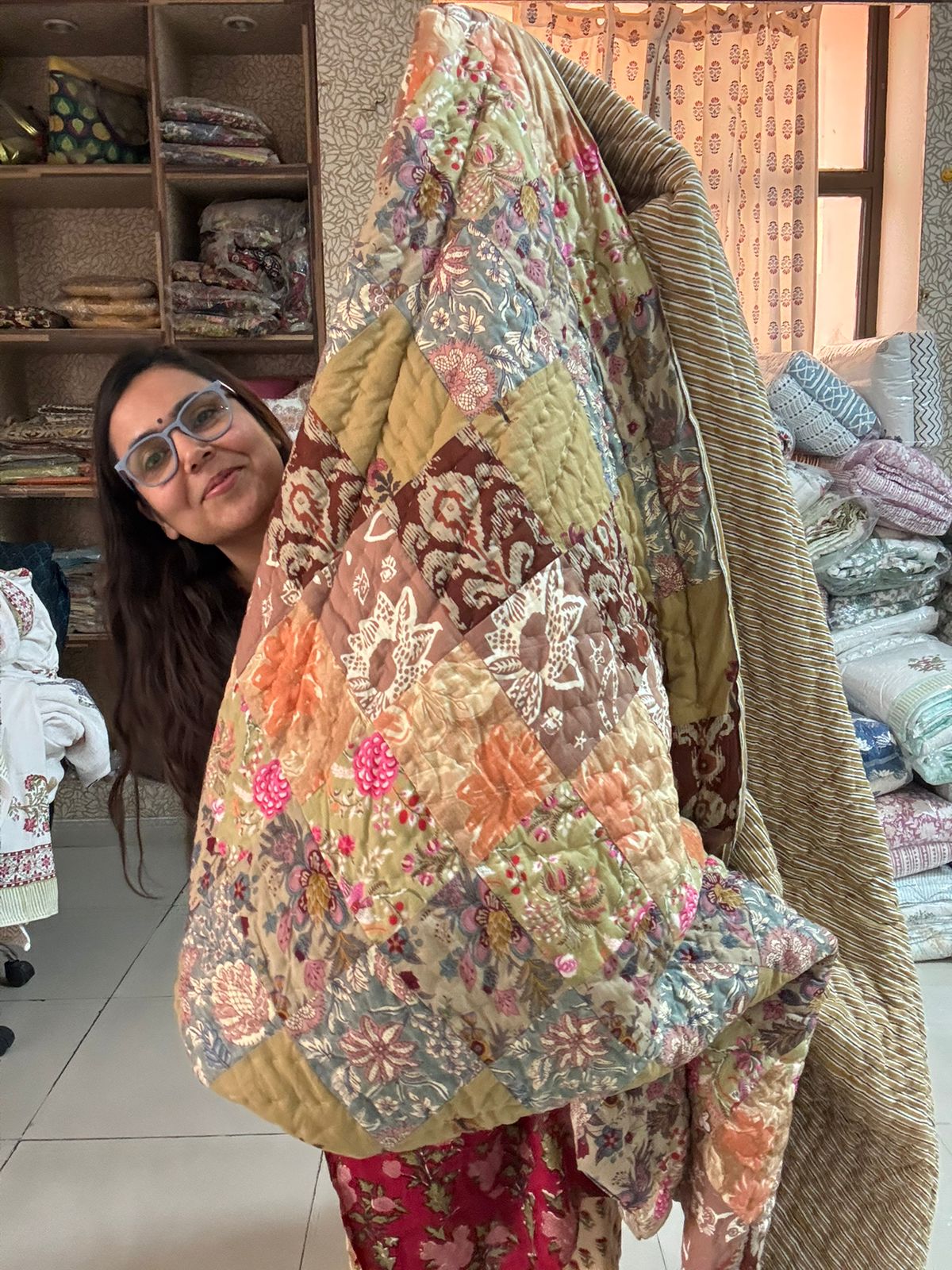 Double Bed - JAIPURI RAZAI - Hand Block Print 🌷Patch - Dusky Love (Dispatch Time 24 Hours)