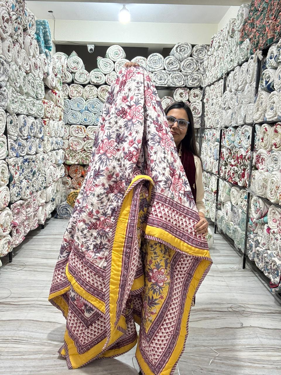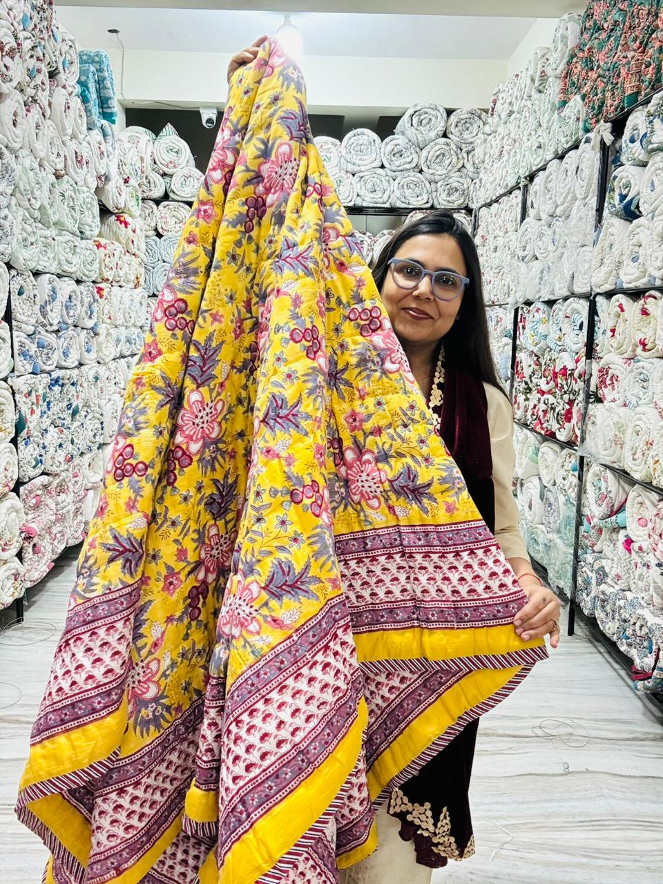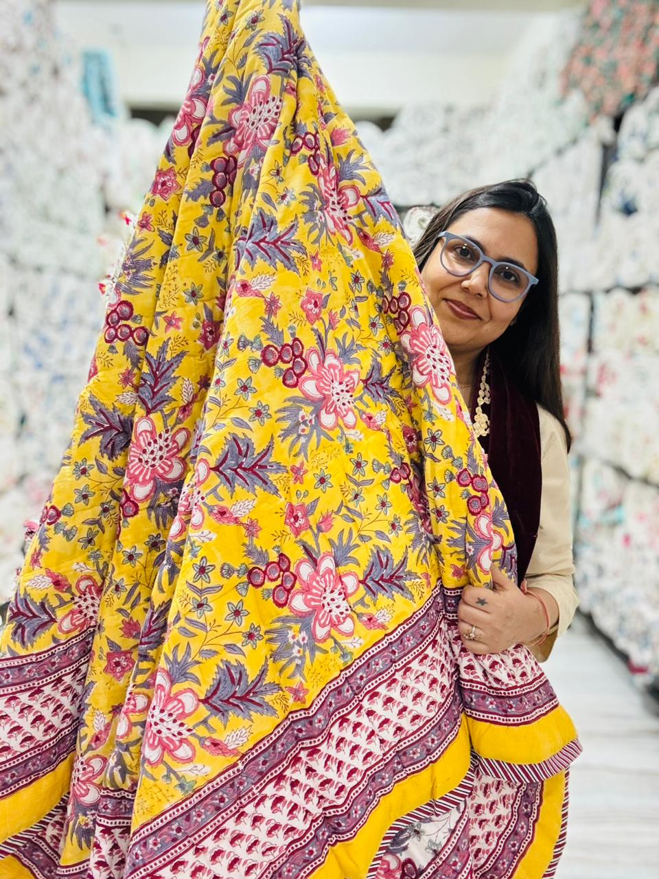 Double Bed - All Season Mulmul Jaipuri Quilt - Hand Block Print 🌻 Sunflower 🌻 ( Dispatch Time 24 Hours)