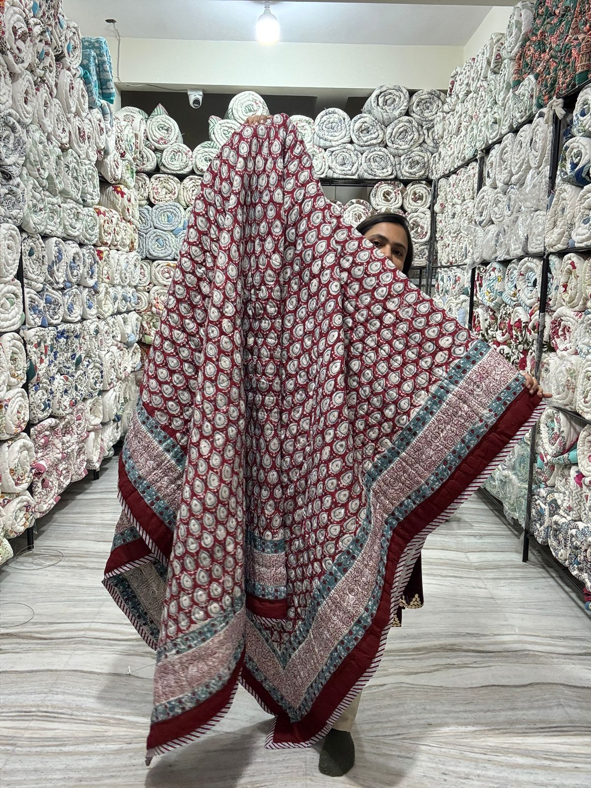 Double Bed - All Season Mulmul Jaipuri Quilt - Hand Block Print- Maroon Paisley (Dispatch Time 24 Hours)
