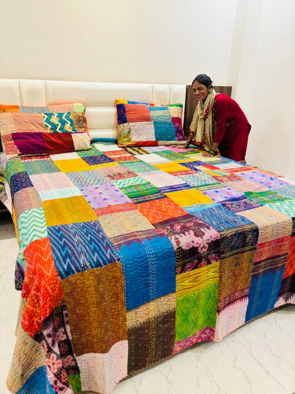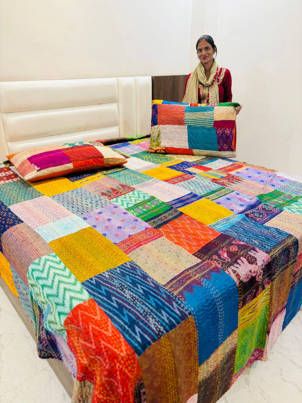 Fairy Tale - Kantha Patola Bedsheet with 2 Pillow Covers Kings