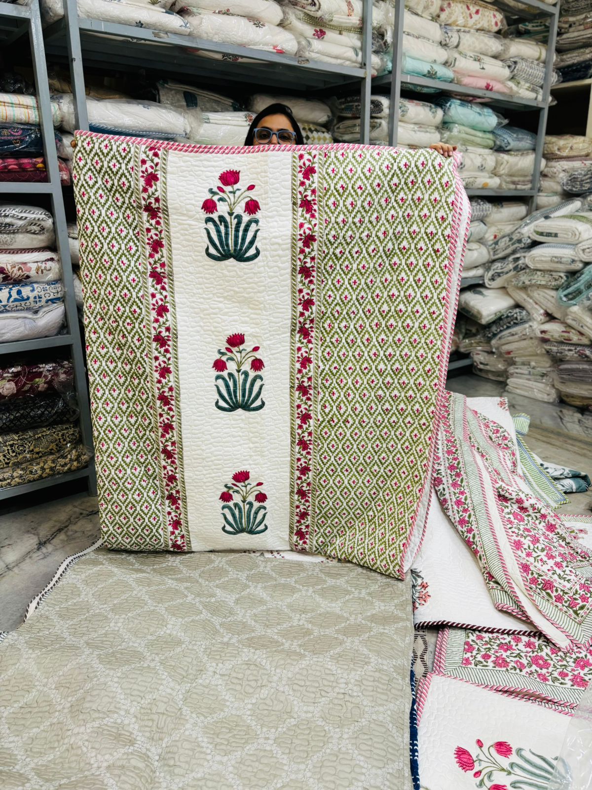 Home Bedding Quilted Bedcovers Jasmine – Quilted Bedcover cum AC Quilt with 2 Quilted Pillow Covers (Dispatch Time 24 Hours)
