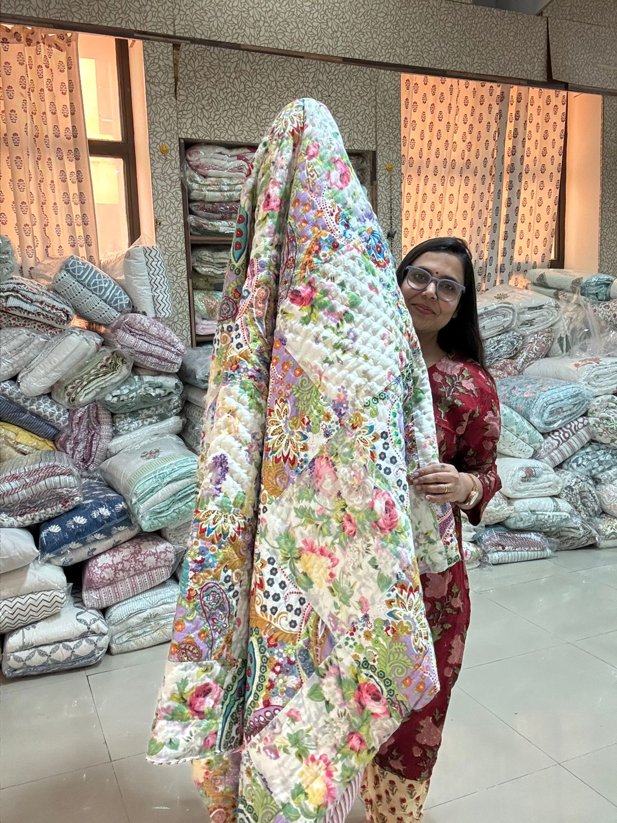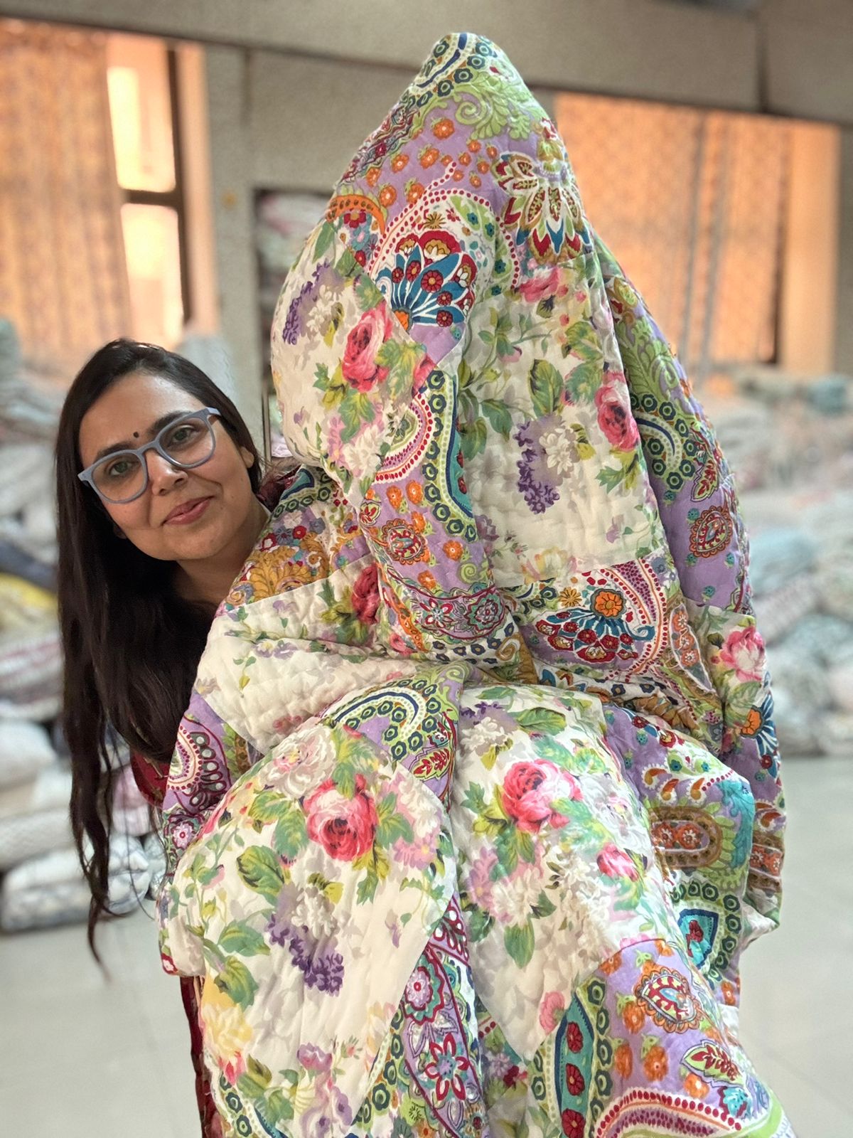 Handmade Jaipuri Razai features one-of-a-kind patterns and stitching, adding a personal touch to your bedroom