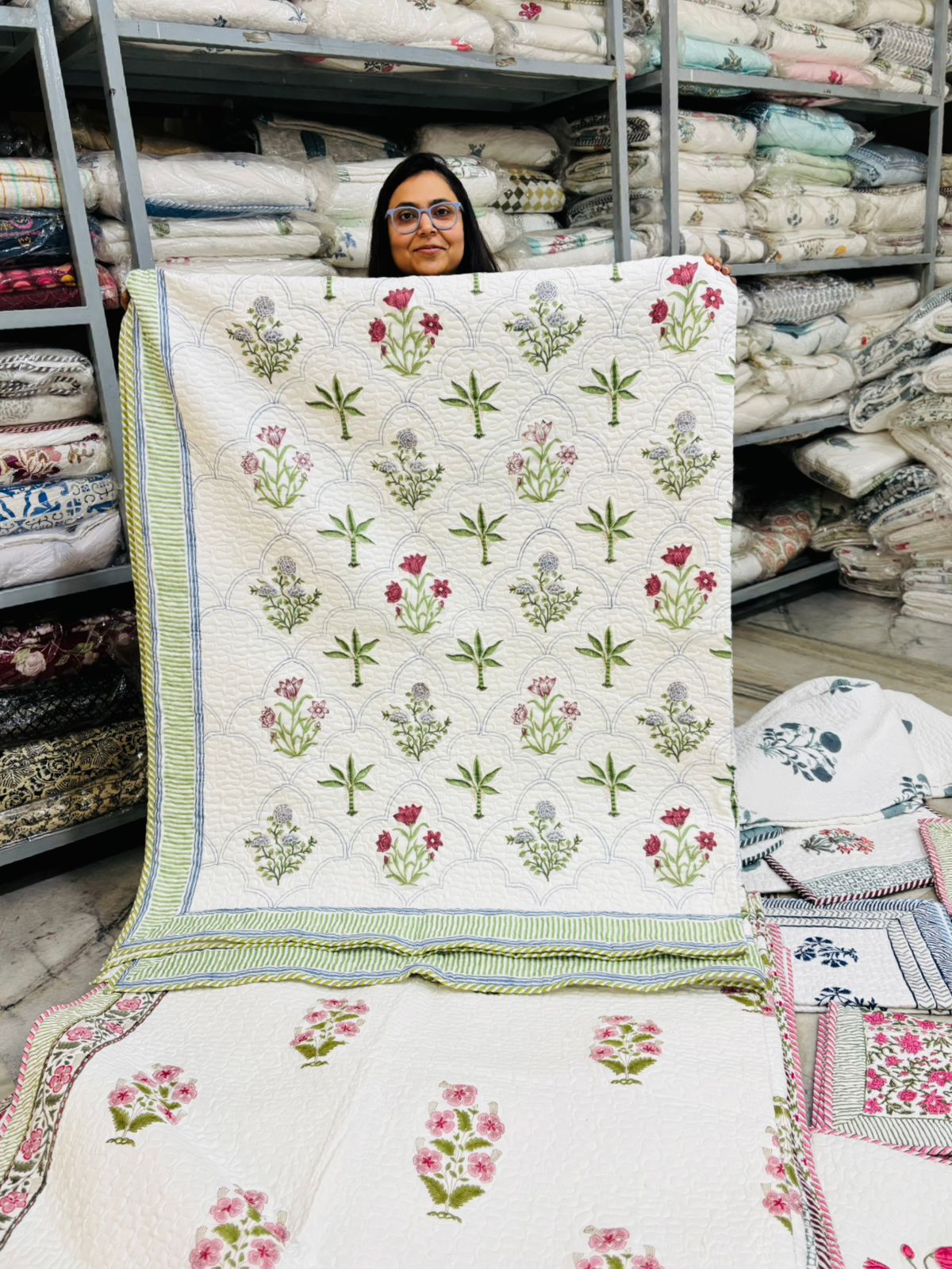 Block Print art and subtle colors, adds a touch of modern and ethnic touch to your bedroom. Hand-stitched with intricate patterns to suit any bedroom decor.The quilting process strengthens the fabric, making quilted bedcovers long-lasting and resistant to wear and tear. They can be used as a standalone bedcover, a top layer over a sheet, or even as a decorative throw.