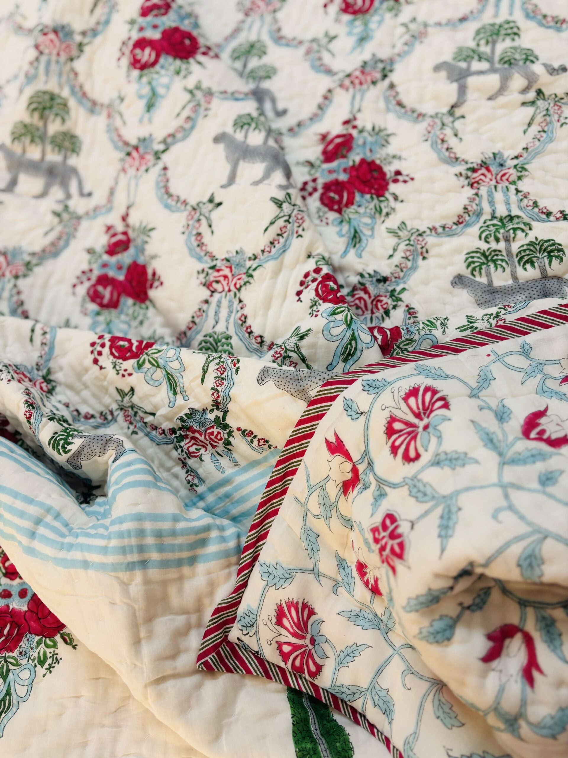 Hand Stitched Block Print Jaipuri Razai, Each piece is done for your comfort, soft color palette. Soft, muted colors like pastels and neutrals create a calming atmosphere.