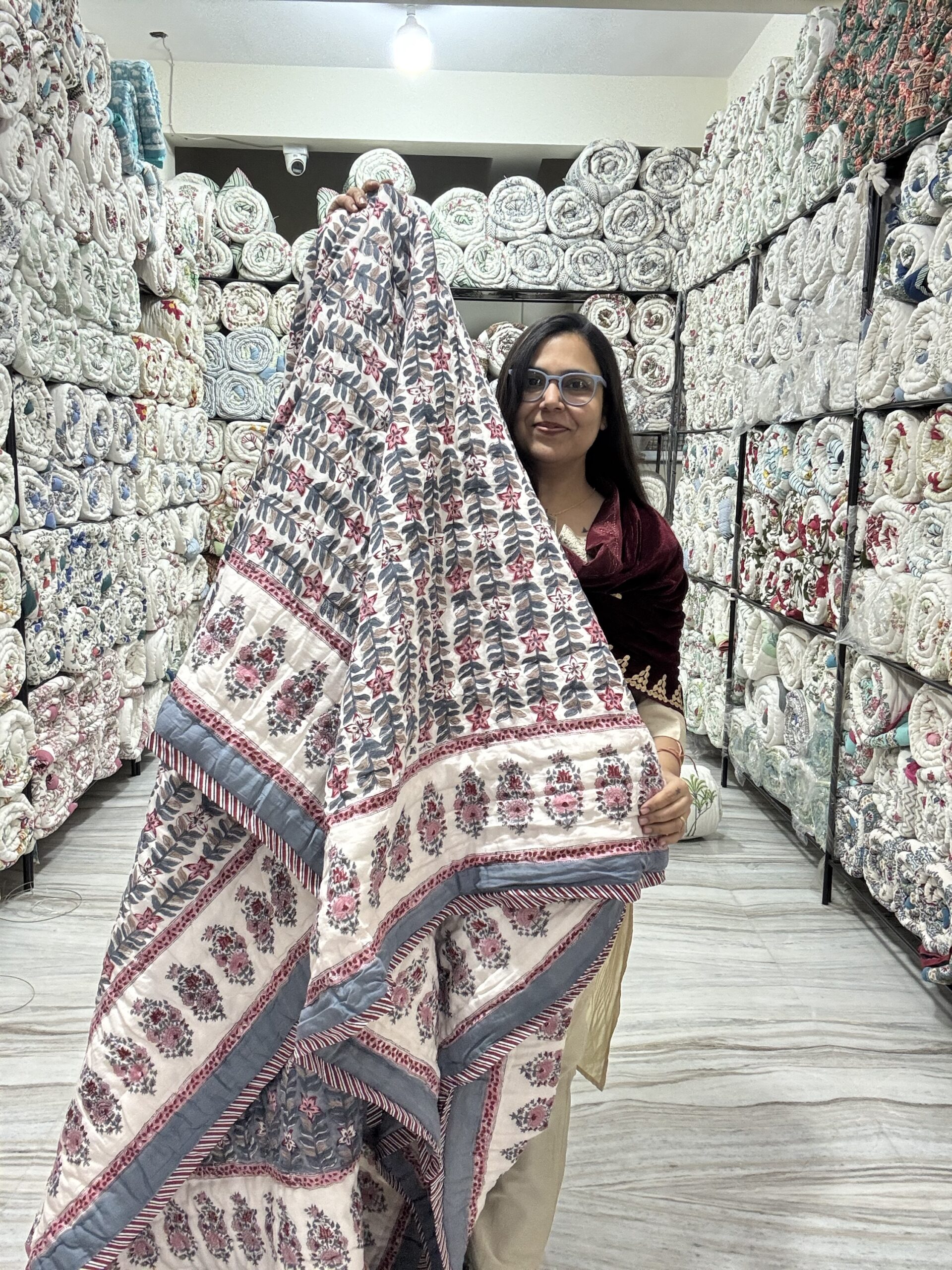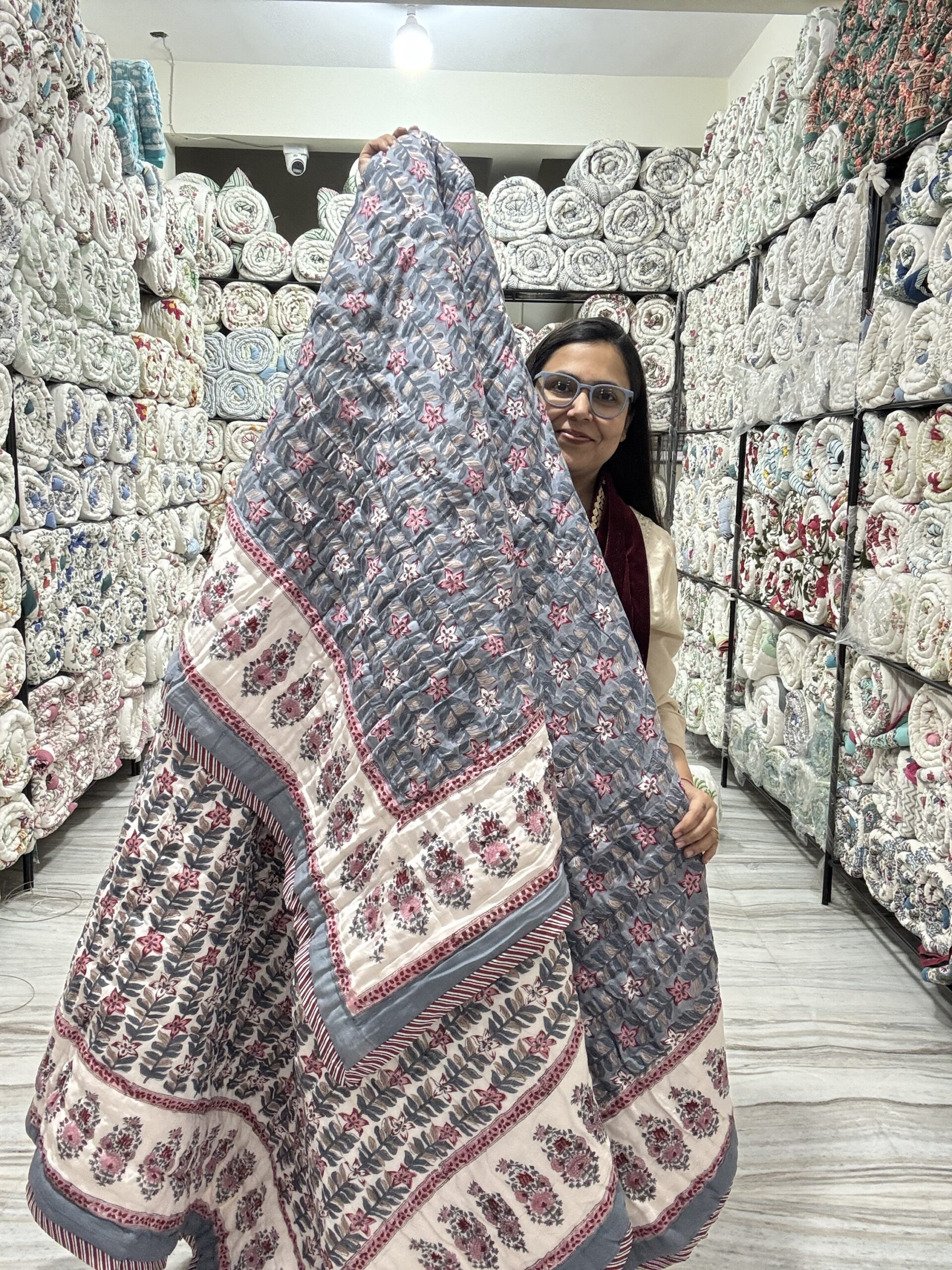Handmade Jaipuri Razai features one-of-a-kind patterns and stitching, adding a personal touch to your bedroom