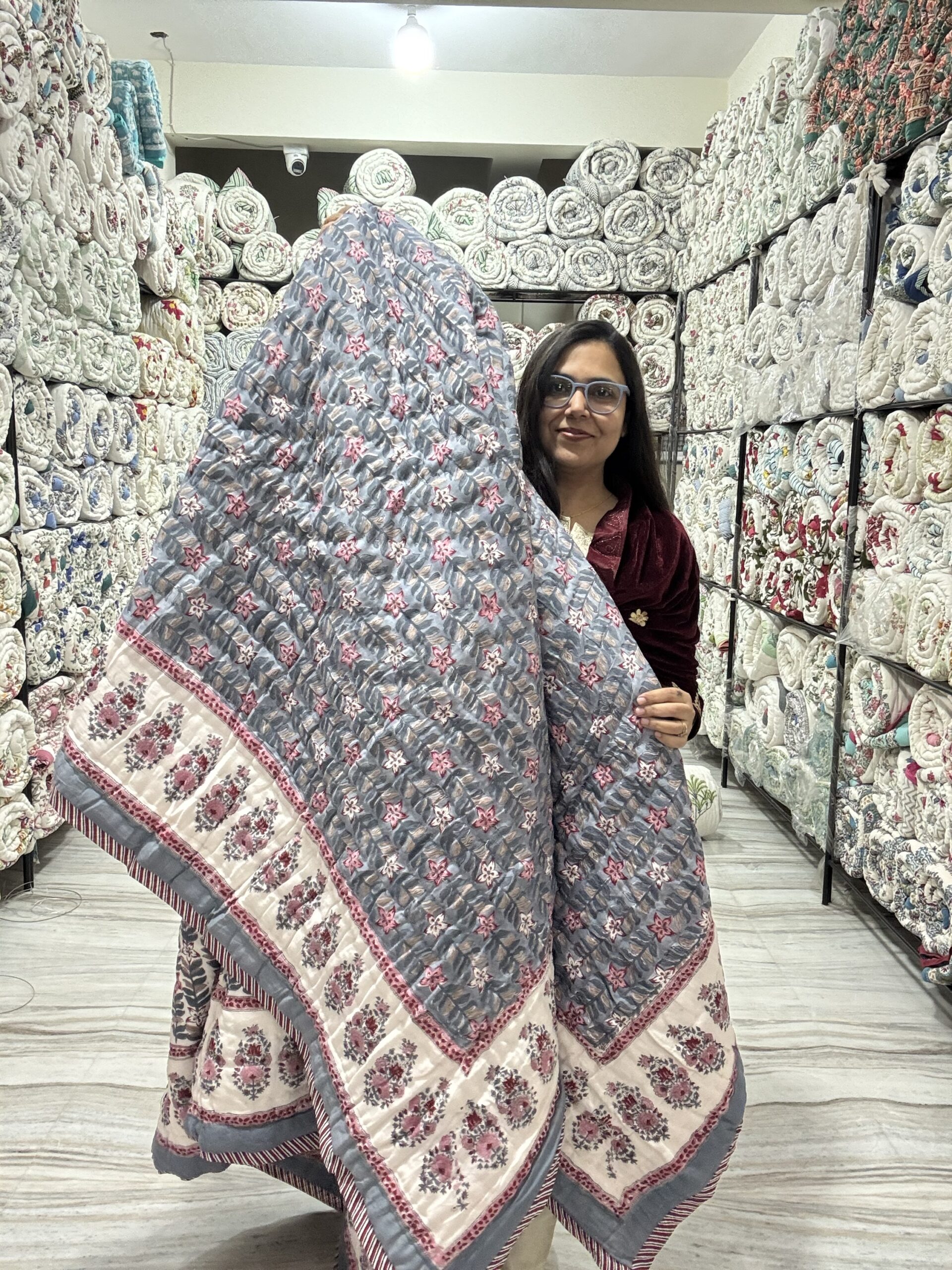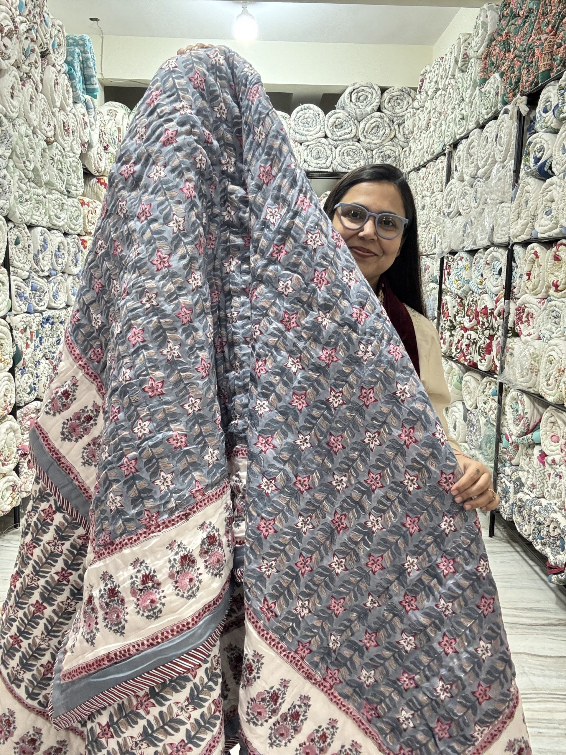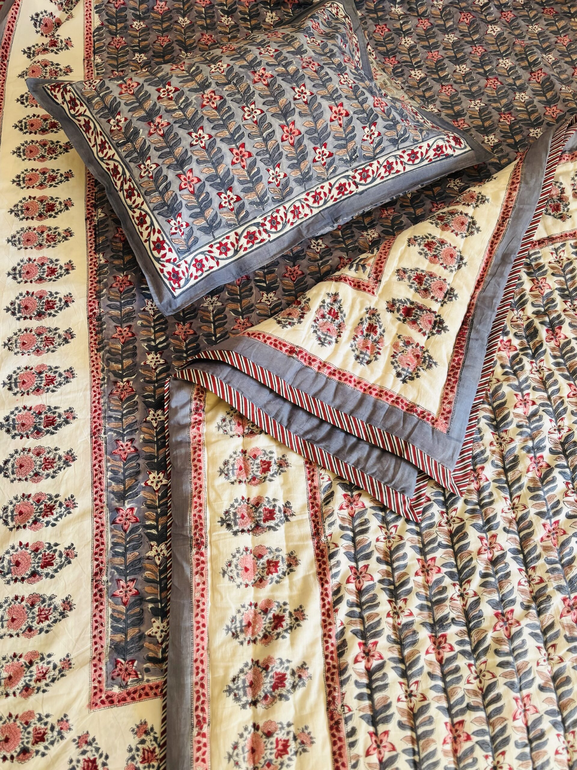 Single Bed - All Season Mulmul Jaipuri Quilt - Hand Block Print Grey 🩶🩶🩶🩶🩶 (Dispatch Time 24 Hours)